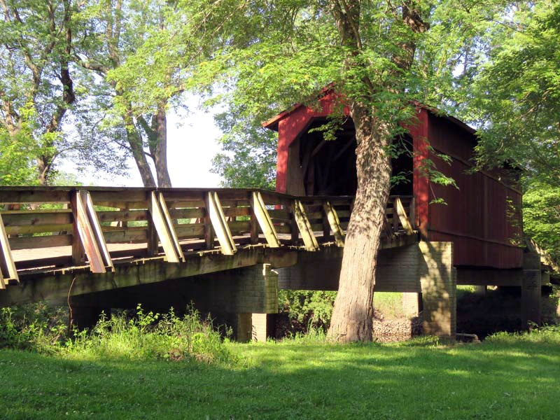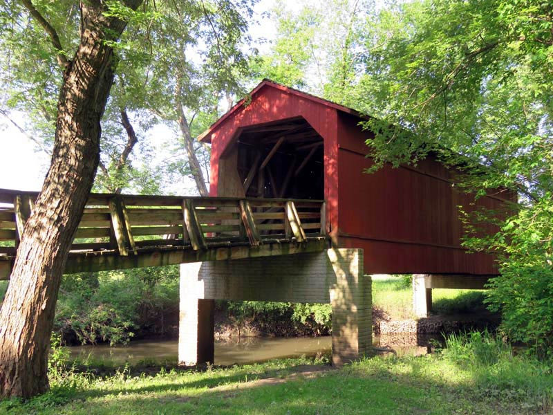 The 1880 Sugar Creek Covered Bridge, the last covered bridge in Sangamon County, spans Sugar Creek a few hundred yards south of where early settler Robert Pulliam built a cabin during his first visit to the area in 1817.