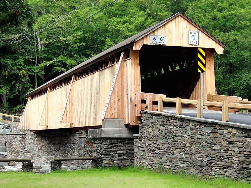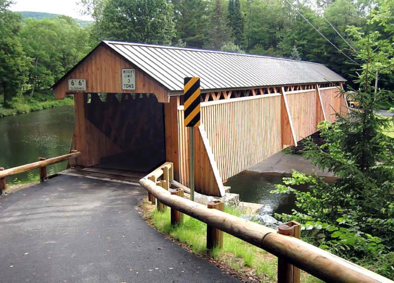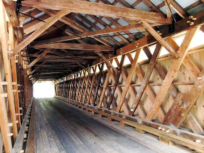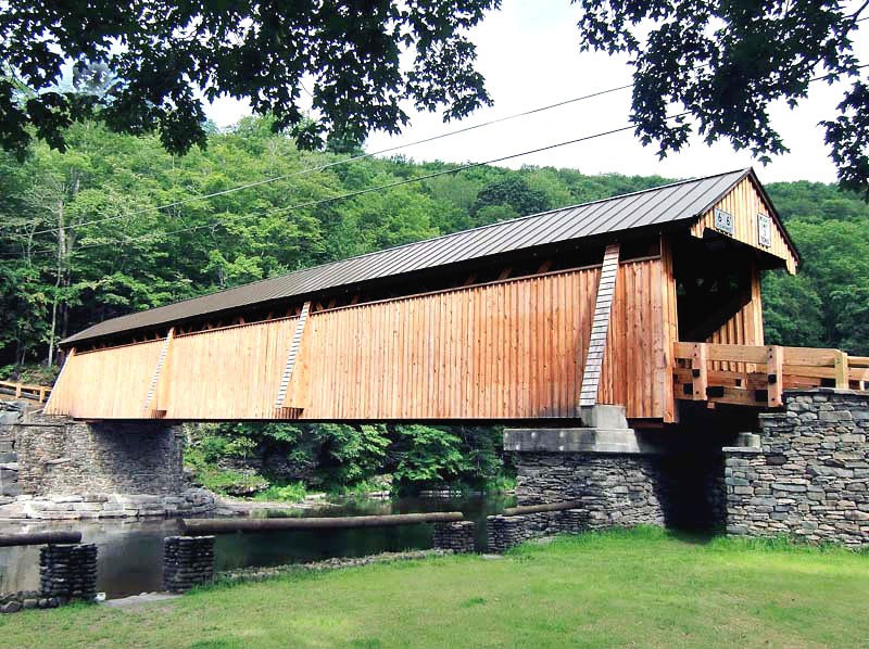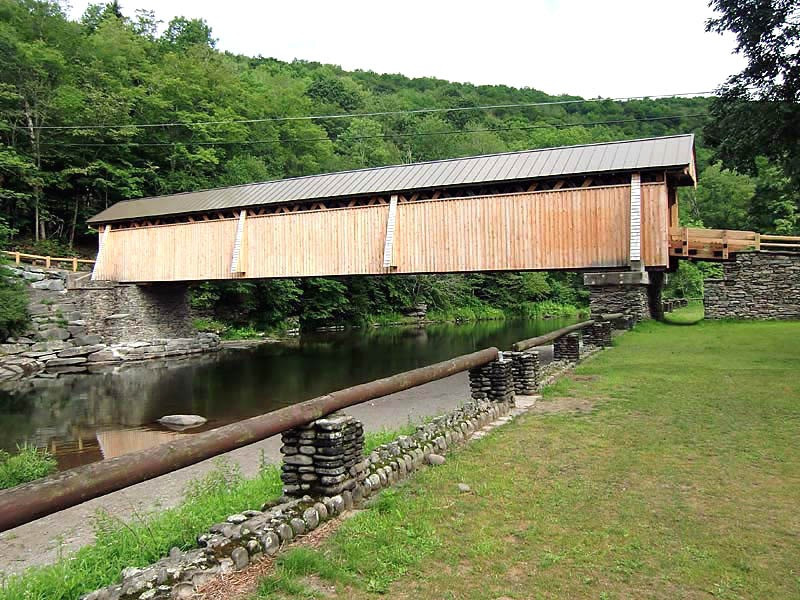 It is a 98-foot hemlock lattice truss bridge supported by dry-laid fieldstone abutments faced in concrete at either end. The bridge was an early step in bringing civilization to a remote area that had remained mostly unsettled well into the 19th century. It remained long after the small town that grew around it went into decline. In the mid-20th century, a proposal to replace it aroused community opposition, and it has received extensive repairs since then.