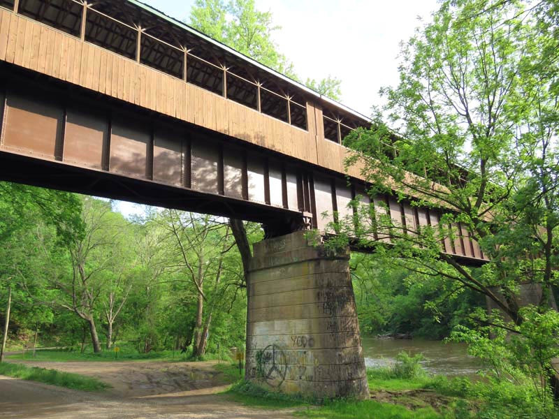 A railroad bridge at the site, carrying the Pennsylvania Railroad line over the river, was constructed in the 1920s. By the early 1990s, the line had been abandoned, and a group of residents and businesses developed a plan for converting it into a multi-use trail stretching from the Holmes County line near Brinkhaven to Danville. The most ambitious aspect of the plan was to cover the 370-foot railroad bridge. Skeptics of this expensive plan claimed that its proponents were "dreaming", which led backers to adopt the name "Bridge of Dreams" for the project. Eventually, planners were able to raise almost $90,000 through contributions and a grant from the Ohio Department of Natural Resources. The "Bridge of Dreams" was completed in December 1998 and dedicated in April 1999. The Mohican Valley Trail officially opened on June 15, 2001. Today, the trail extends from East Street in Danville to the Holmes County Line, connecting the Kokosing Gap Trail and the Holmes County Trails.