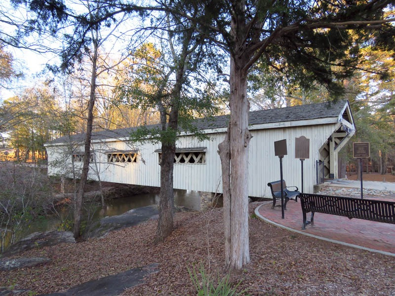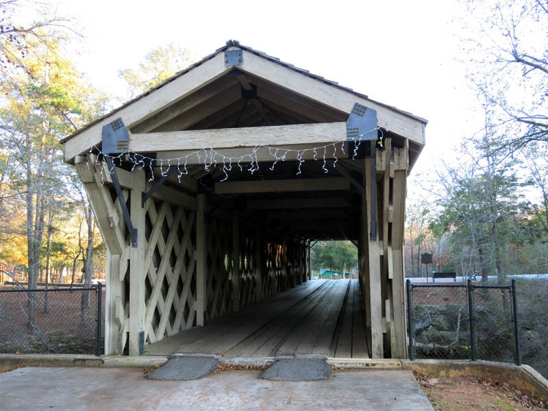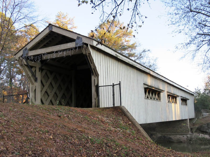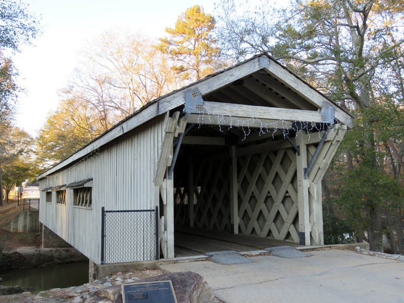 A covered bridge was constructed in 1872, spanning 127 feet over the North Oconee River in Jackson County.