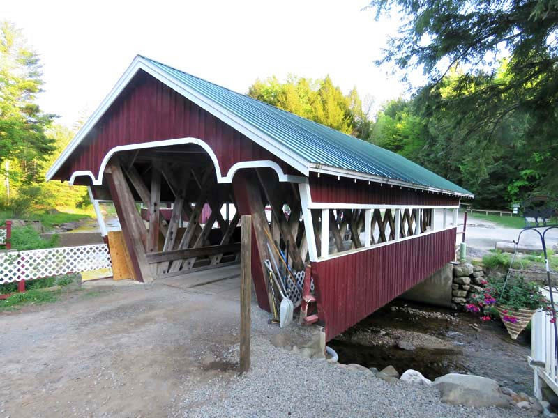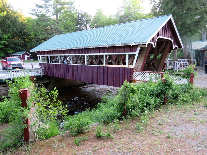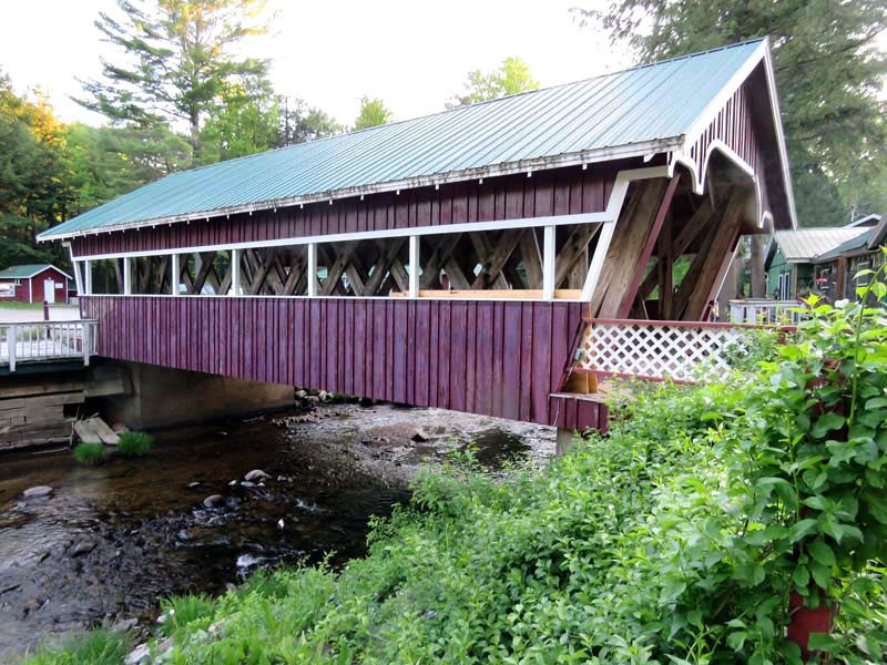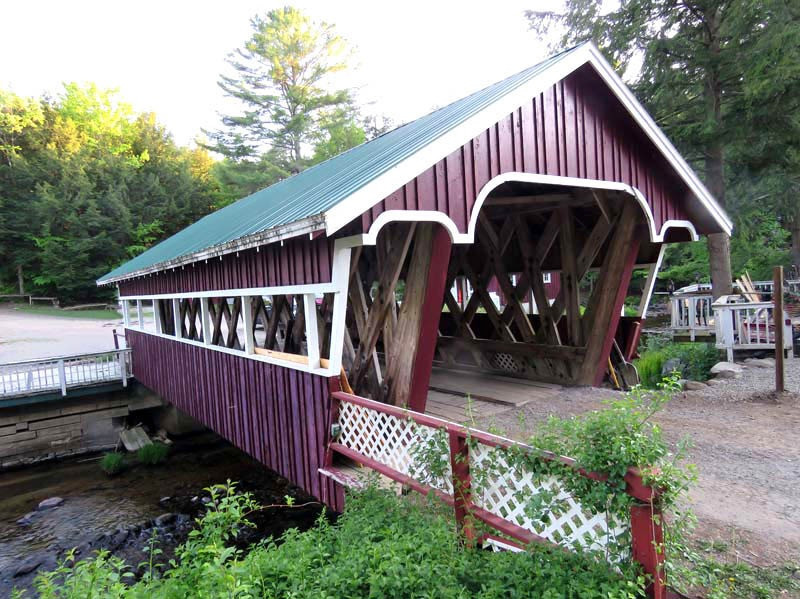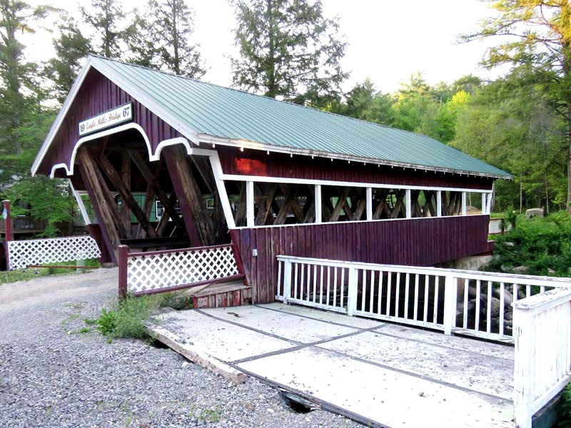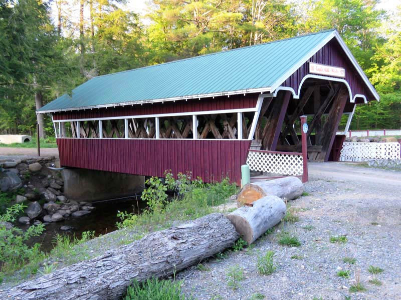 John Gasner built the 1967 Eagle Mills Covered Bridge. This 41-foot, single-span Town truss bridge crosses Kennyetto Creek in Fulton County, New York. The Town lattice truss design was patented on January 28, 1820, and again in 1835 by Ithiel Town of New Haven, Connecticut. The Eagle Mills Covered Bridge is the only remaining covered bridge in Fulton County and is maintained by its owner. It is one of two (the other being the Frontenac-North Country Covered Bridge) covered bridges in the state with a double walkway.