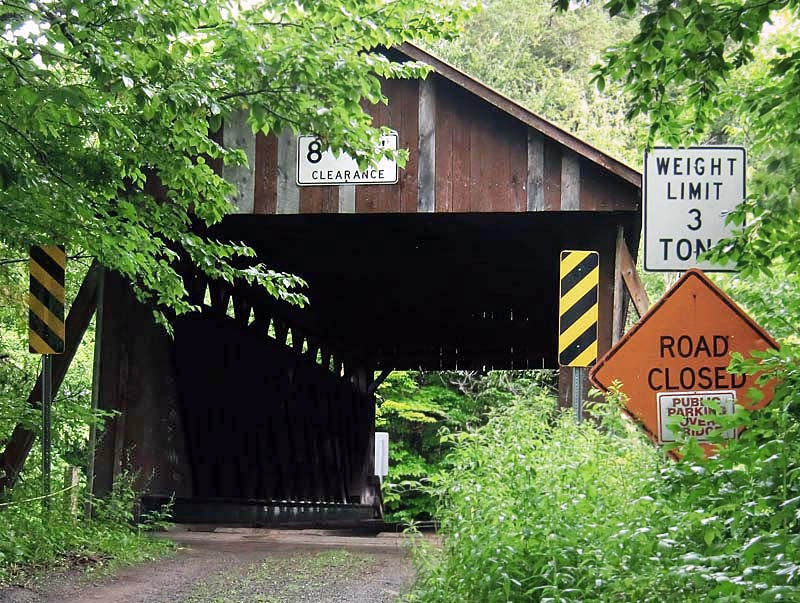 Willowemoc Bridge is one of five covered bridges in New York State that has a timber approach. The original Town truss design no longer supports this bridge as it was originally designed to do, so it is now classified as a Stringer.