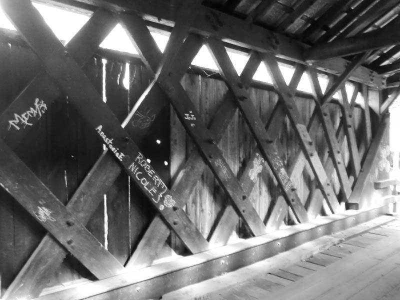 In 1913, the village decided to build a new bridge. Half of the covered bridge was moved to its present location, crossing Willowemoc Creek, where it still stands today and is known as the Bendo Covered Bridge. When it was re-erected, the bridge was shortened to 48 feet. When visiting this bridge, be sure to notice the treenails (pronounced “tunnels”) holes in the decking. You will see where parts of the original bridge were used in the reconstruction process.