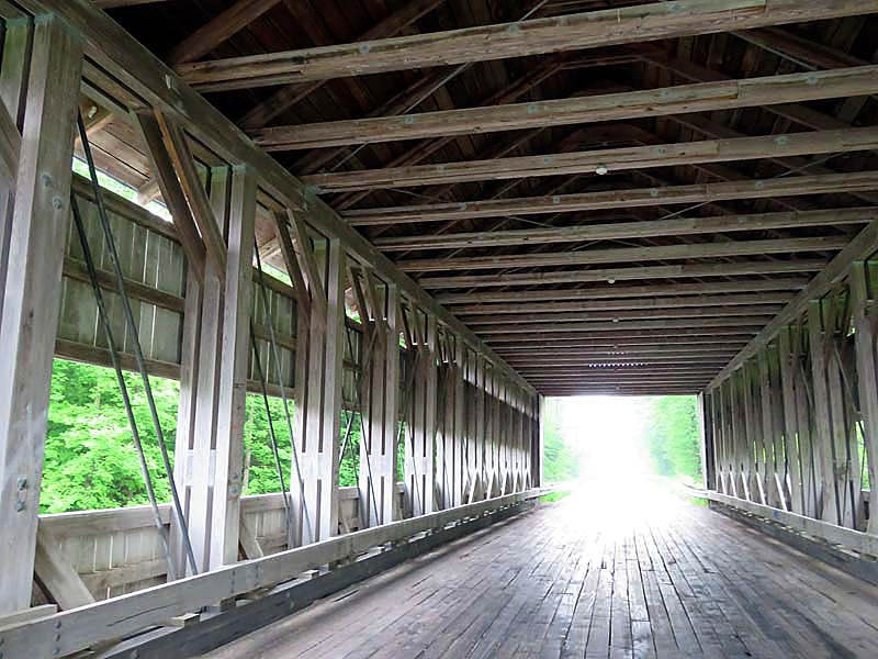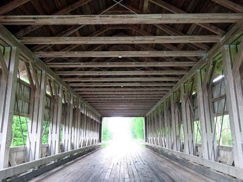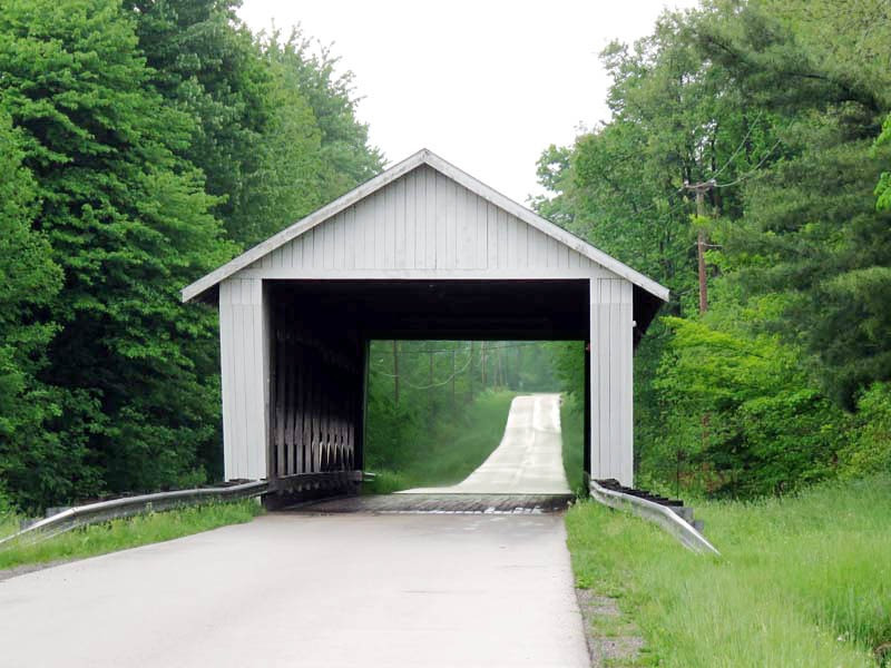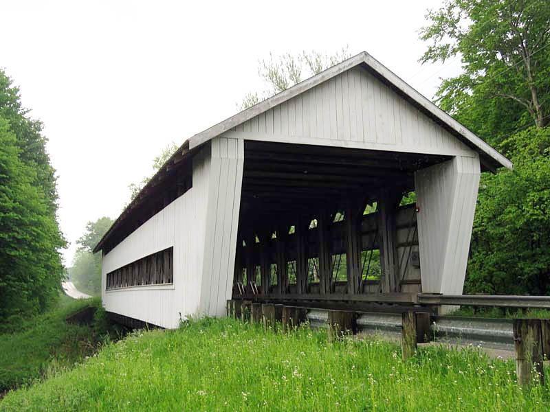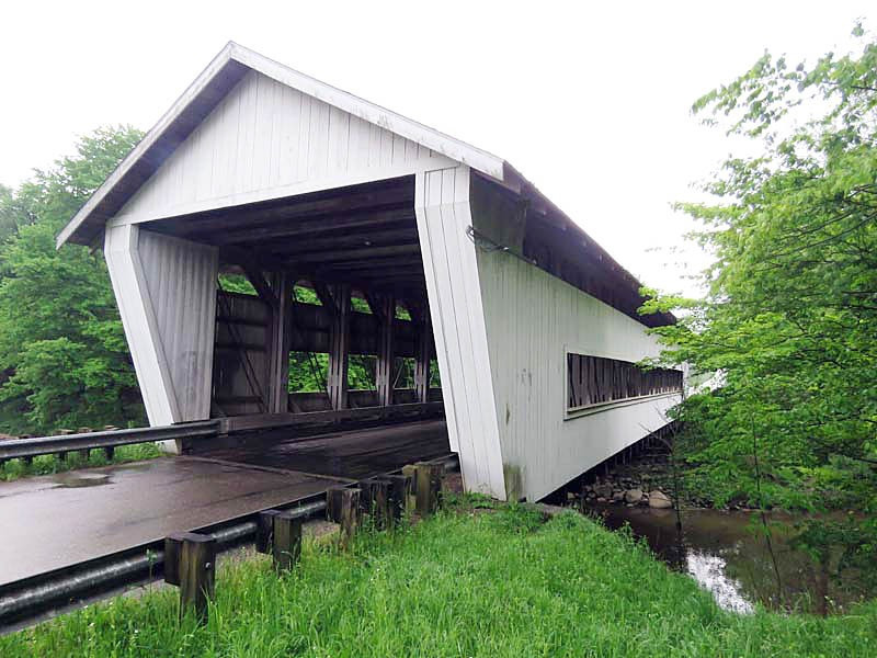 John Smolen selected the Pratt truss design for his third new timber-bridge venture in Ashtabula County. Crossing Mill Creek on Giddings Road, the 107-foot-long bridge was completed in 1995.