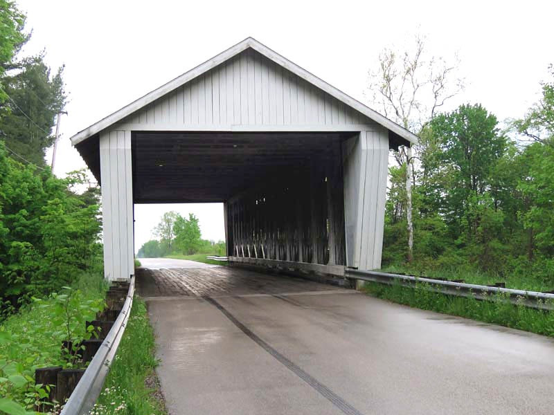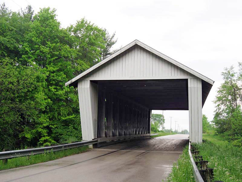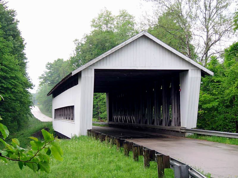 The Giddings Road Covered Bridge spans Mill Creek in Jefferson Township, Ashtabula County, Ohio. The bridge, one of the county's currently 16 drivable bridges, is a single-span Pratt truss design.