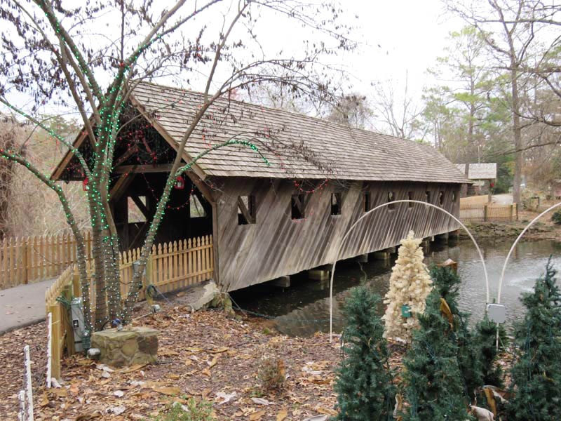 The Gilliland-Reese Covered Bridge was constructed in 1899 by a crew under the direction of Etowah County Commissioner Jesse Gilliland. A town Lattice truss made of rough-hewn lumber and covered with weathered shingles, originally located over Little Wills Creek at Gilliland Plantation in the vicinity of present-day Bethany Sitz Gap Road near Reece City. The bridge provided a crossing over the creek, thus improving area transportation, and was also a favorite meeting place. Eventually, the Gilliland-Reese Covered Bridge was replaced in the 1920s by the new Reeceville Road. In 1966, the bridge was donated to the City of Gadsden by the family of Judge H. Ross Gilliland, as it was threatened by the construction of Interstate 59. No other structures of the Gilliland Plantation are known to remain. The bridge was fully restored and moved to Noccalula Falls Park in 1967. Most of the Town Lattice truss setup was removed during restoration, making the bridge more of a Stringer construction. Therefore, it is currently classified as a non-authentic covered bridge.