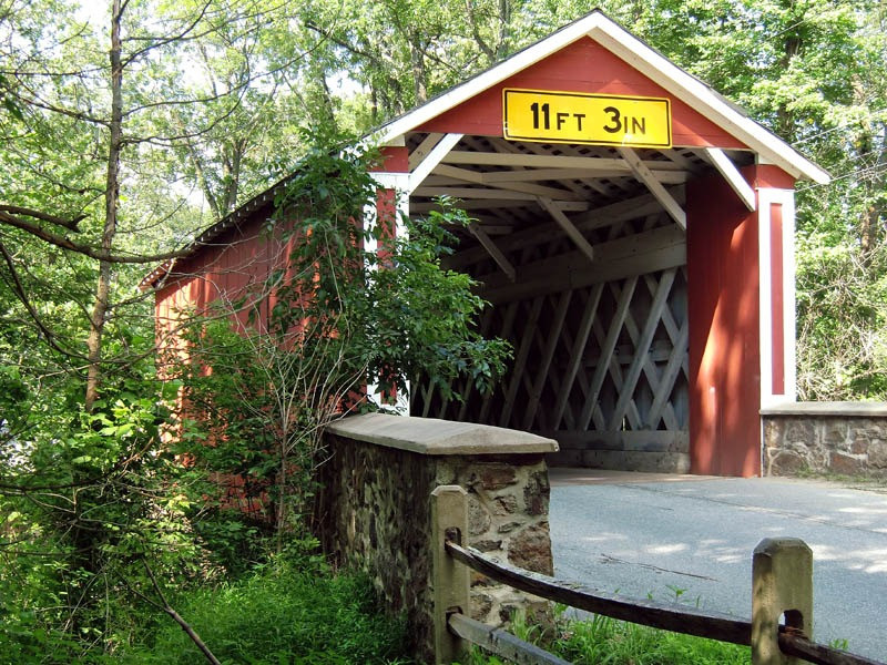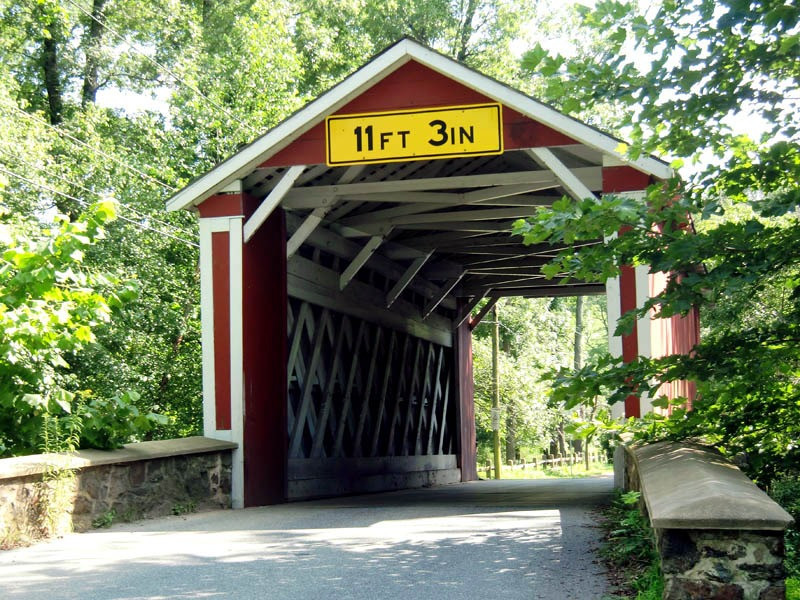 The first known covered bridge in America was designed by the Massachusetts millwright, Timothy Palmer. It crossed the Schuylkill River at Philadelphia with a length of 550 feet. Interestingly enough, the bridge was not originally intended to be covered, but a suggestion from Judge Richard Peters, whose estate bordered the river at the bridge, was to handsomely roof, side, and paint the structure. The idea was well received, and so the painted and covered timber bridge became a common sight on American roads from Maine to Florida to Oregon. These bridges were constructed in the middle of the 20th century for carriage and later auto use.