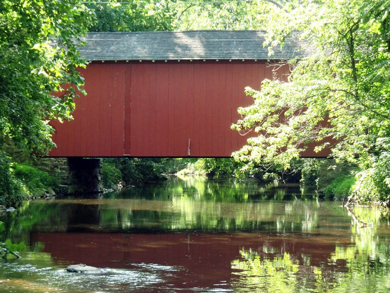 1850s Ashland Covered Bridge over the Red Clay Creek, also known as Barley Mill Road Covered Bridge in Ashland in New Castle County, Delaware.