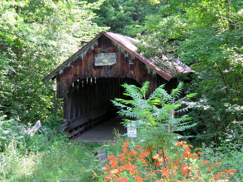 Personal note: In the summer of 2019, Blacksmith Shop Bridge was well on the way to being swallowed up by the surrounding trees and vegetation. Difficult to find with no markers and not visible from the road, New Hampshire is in danger of losing this bridge due to neglect. The inside of the bridge was still in decent shape, however.