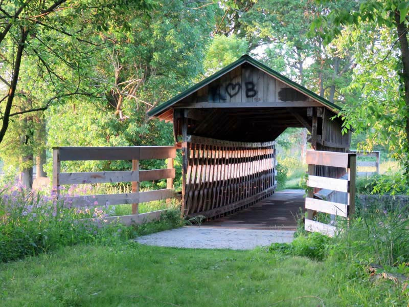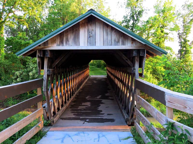 Birdwatchers and other fans of wildlife will want to stop in at the Hebron State Fish Hatchery just south of Interstate 70 along the trail's route. A wooden-truss-covered bridge built in 1992 spans an irrigation ditch across Canal Road from the facility. Here, a larger adjacent waterway begins, continuing south along the trail until its end at State Route 79.