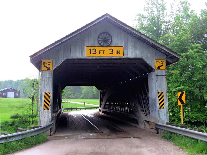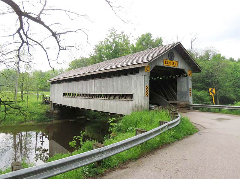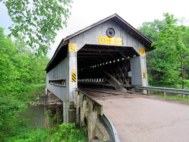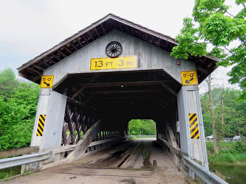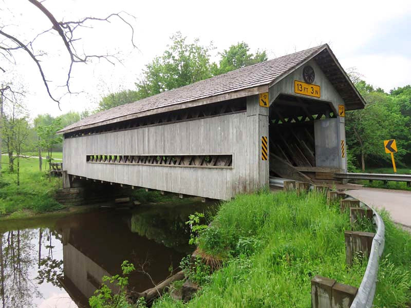 The Doyle Road Covered Bridge, also known as Mullen Bridge, is a covered bridge spanning Mill Creek in Jefferson Township, Ashtabula County, Ohio. Built in 1876, the bridge is one of 16 drivable bridges in the county. The bridge is a single-span Town Lattice truss design, with laminated arches added during its renovation in 1987. Open to traffic, it is located approximately 1.9 miles north-northwest of Jefferson.