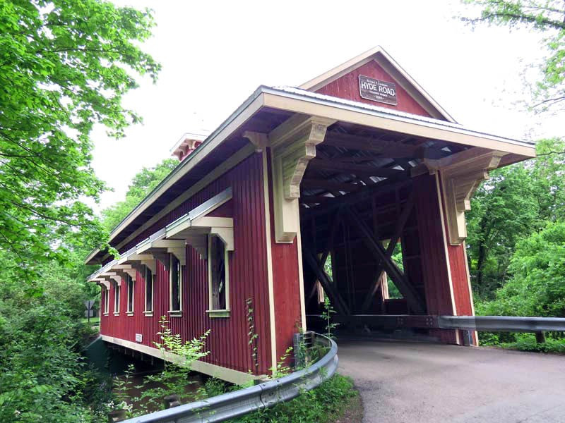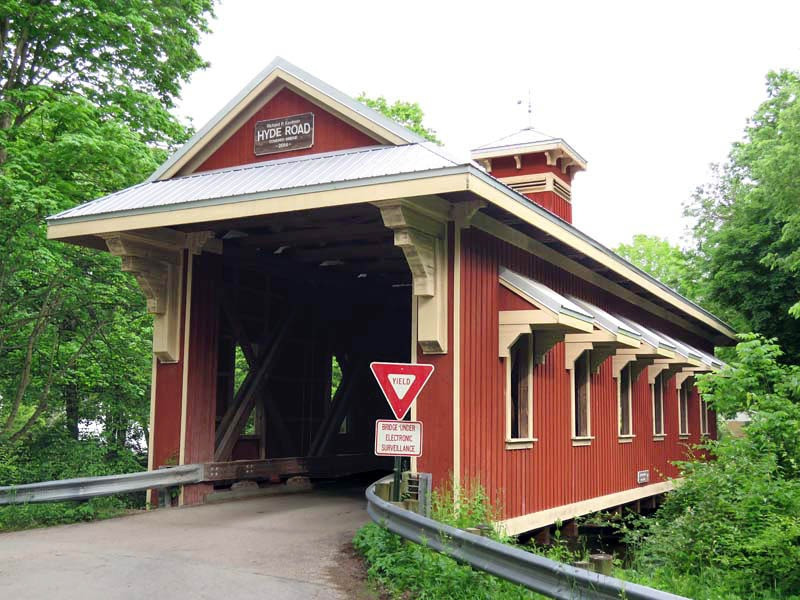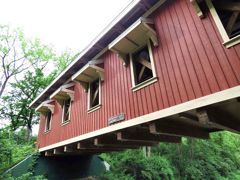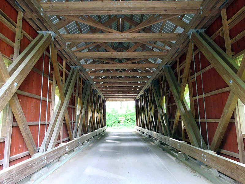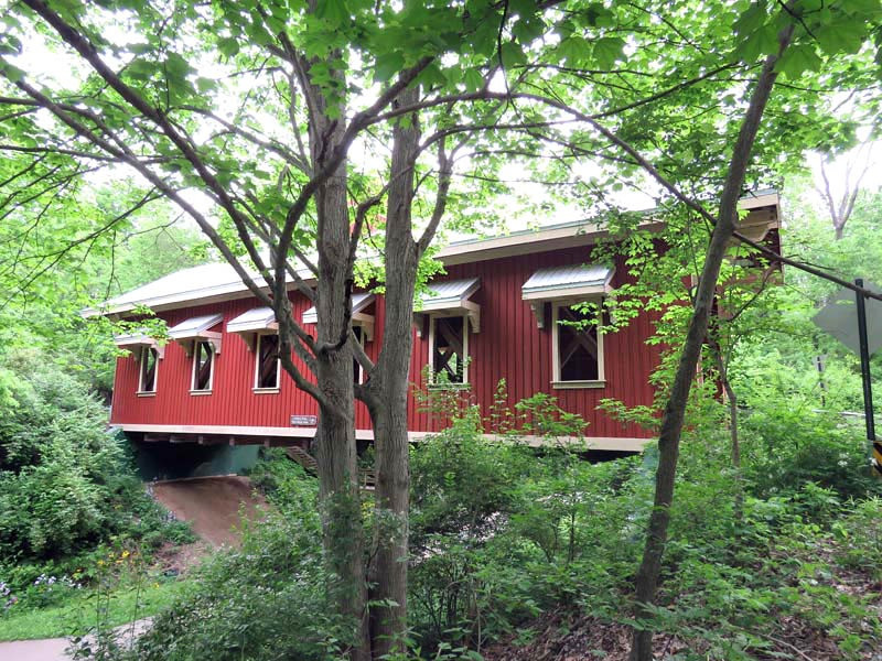 Richard P. Eastman, who loved covered bridges, raised his family just south of the structure and was instrumental in funding and designing the bikeway that the bridge crosses. The new covered bridge replaced an uncovered, deteriorated steel bridge that had been closed for a year.