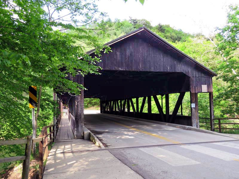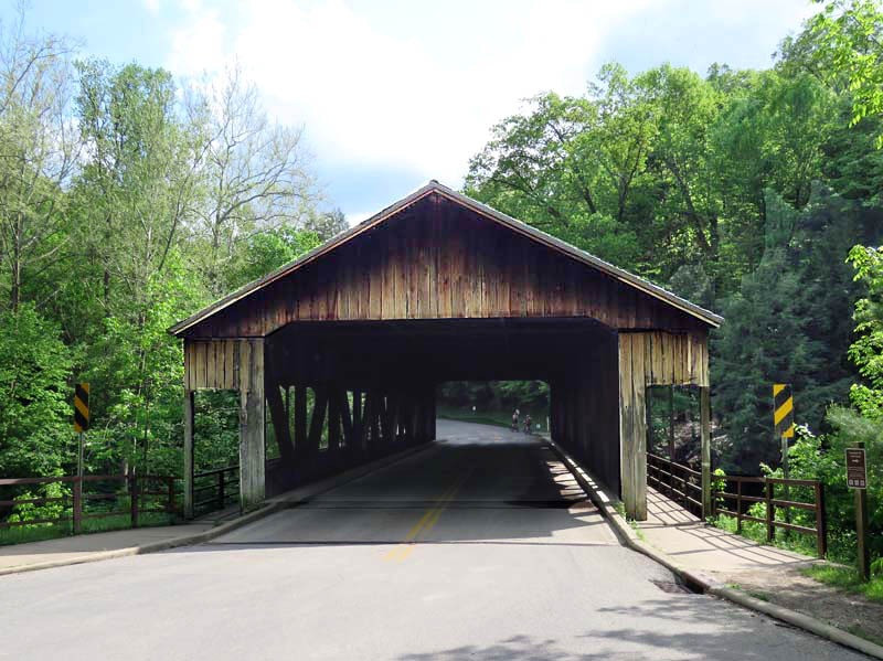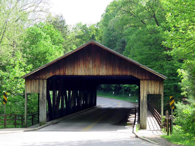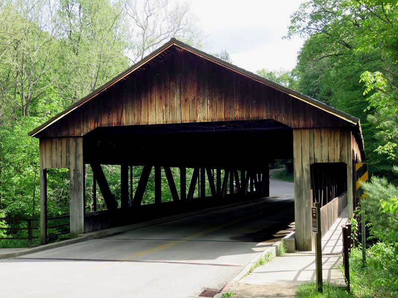 The 1969 Mohican Covered Bridge is the oldest and most recognizable sight of Mohican. Drive through this 150-foot bridge and visit the area around the bridge, which includes several trailheads, a picnic area, and river access. The bridge is built over a modern steel span, making the 'covered' part of the bridge more akin to a canopy than a structural component of the bridge's overall framework.
