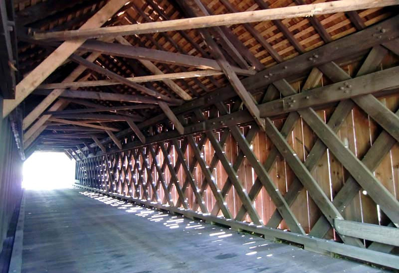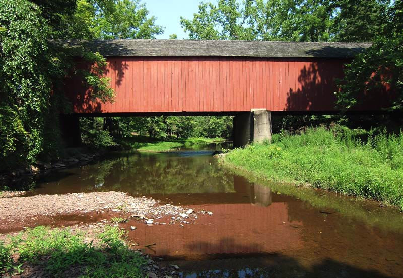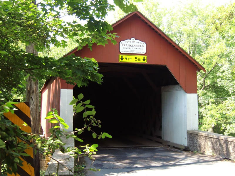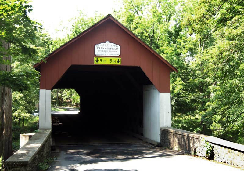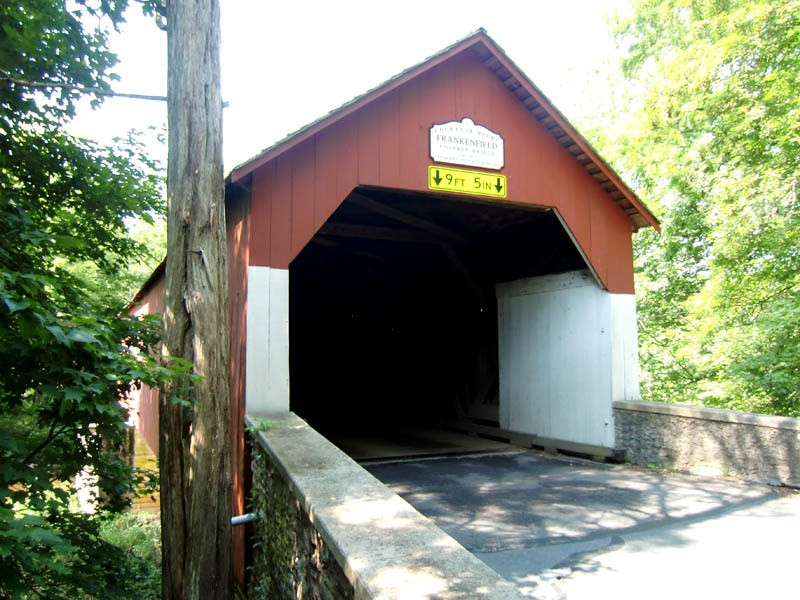 Frankenfield Bridge was built in 1872 and is a town truss bridge constructed of oak. Frankenfield Covered Bridge is 130 feet long with a clearance of 9.42 feet. The bridge was rehabilitated in 1978.