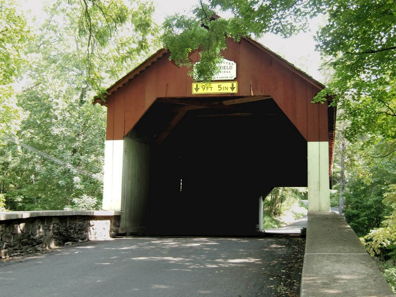 The 1872 Frankenfield Covered Bridge is a wooden covered bridge that spans Tinicum Creek in Point Pleasant, two miles upstream from the point at which the creek empties into the Delaware River in Bucks County, Pennsylvania.