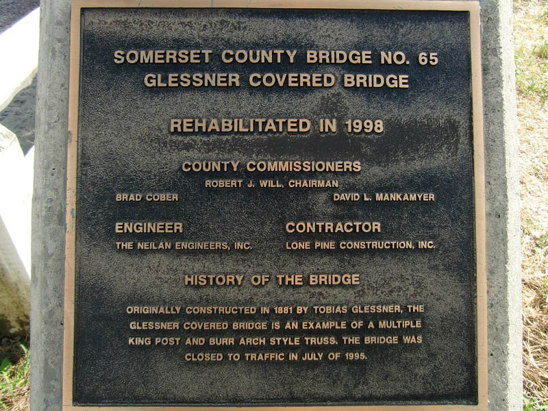 The Glessner Covered Bridge is a historic covered bridge in Stonycreek Township, Somerset County, Pennsylvania. It was built in 1881 and is a 90-foot-long, long-multiple Kingpost truss bridge, with half-height plank siding and a tin-covered gable roof. The bridge crosses the Stony Creek River. It is one of 10 covered bridges in Somerset County and replaced a covered bridge built in 1881 in 1998. Also called PA-56-08 #2.