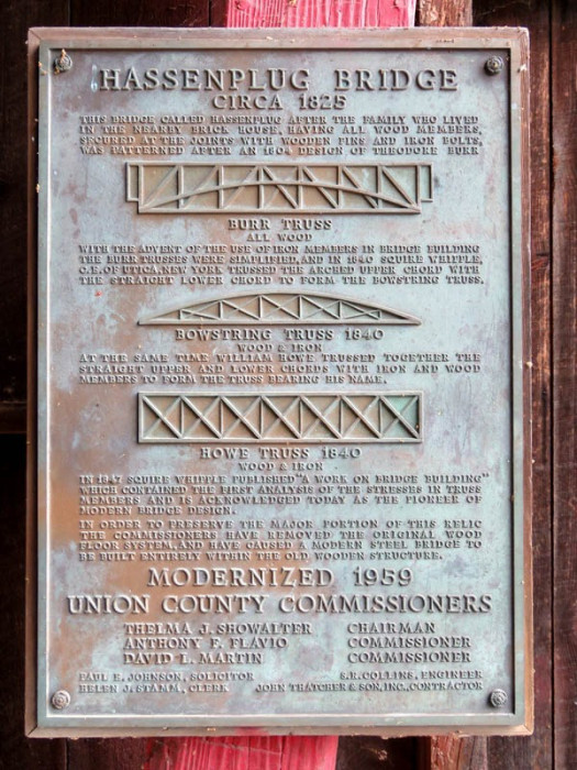 Hassenplug Bridge is the oldest covered bridge in the United States. However, this distinction is also claimed for the Hyde Hall Bridge in Cooperstown, New York.