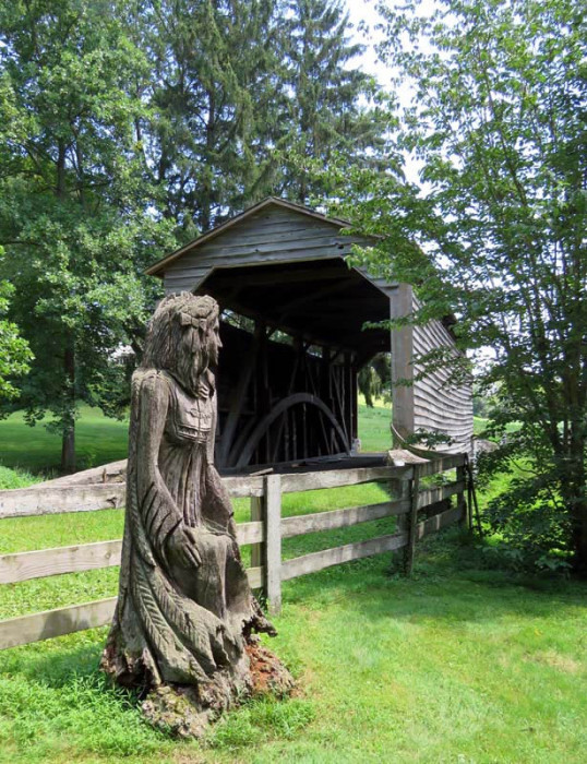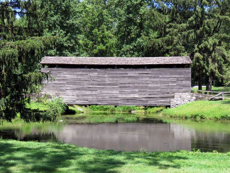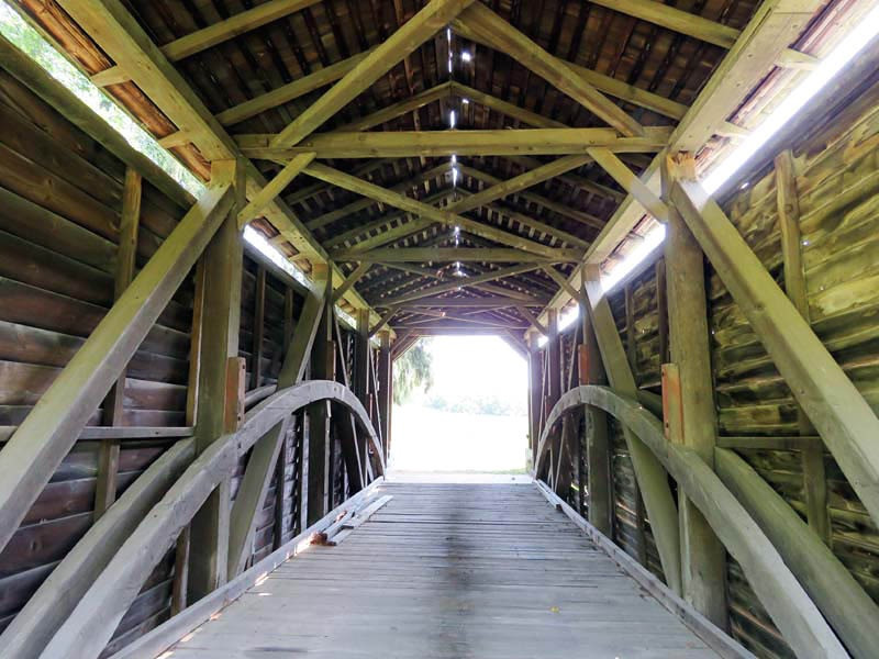 The bridge is one of only three covered bridges in the county with horizontal sideboards.
