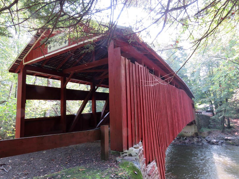 The Josiah Hess Covered Bridge No. 122 is a historic wooden covered bridge over Huntington Creek in Fishing Creek Township in Columbia County, Pennsylvania. It is a 105.1-foot-long, Burr Truss arch bridge constructed in 1875. It is one of 28 historic covered bridges in Columbia and Montour Counties.
