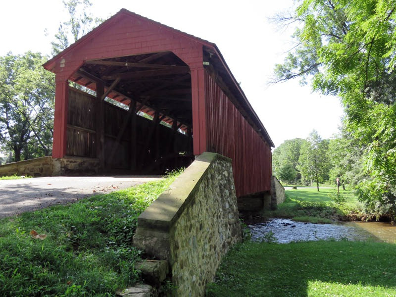 Built by Levi Fink and Elias McMellen for $1219 in 1859. It was also known as Yohn’s Mill Bridge. Bypassed by a new concrete bridge in 1973, the bridge is located on private property. Historical records tell us that before James Buchanan became president, he met his fiancée at Pool Forge, but she died before they could be married, and he became our country’s only bachelor president.