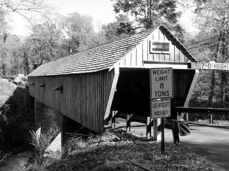 Concord Bridge replaced a bridge believed to have been built in the 1840s and destroyed during the Civil War. The Concord Covered Bridge has the distinction of being the only covered bridge still in use on a public highway in the metropolitan Atlanta area.