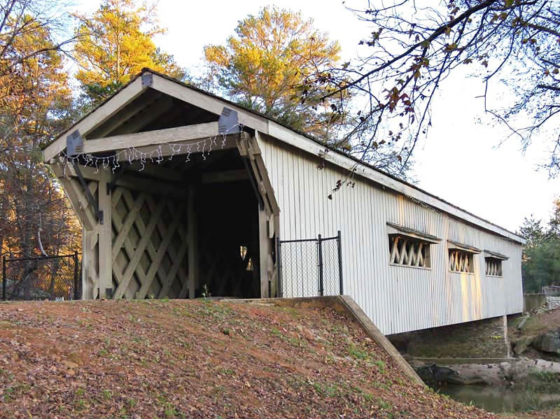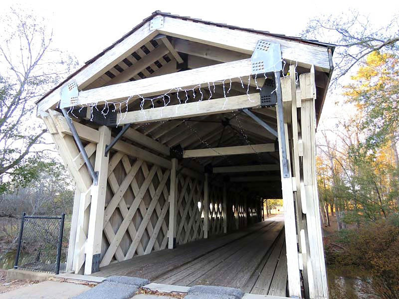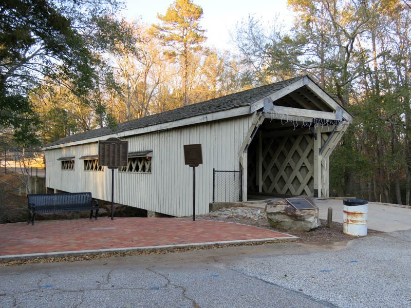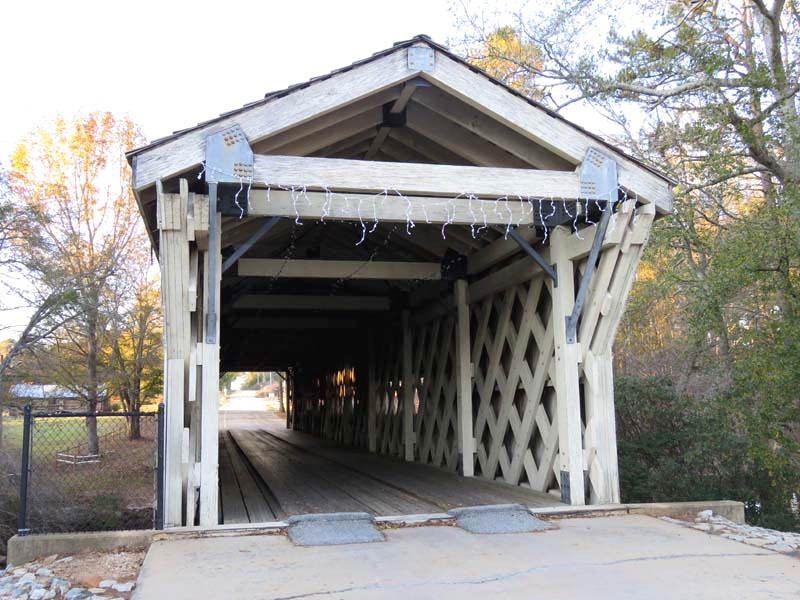 A covered bridge was constructed in 1872, spanning 127 feet over the North Oconee River in Jackson County.