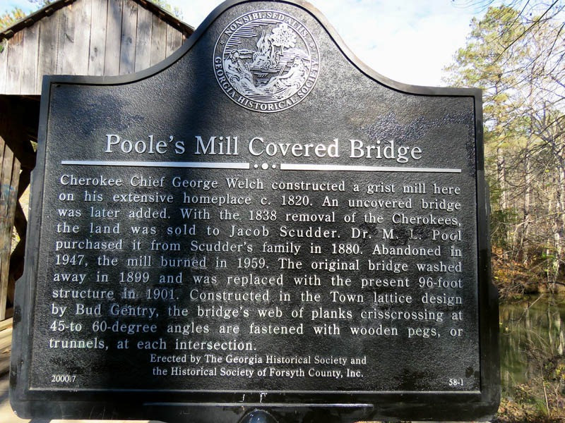 The 1906 Poole's Mill Covered Bridge - Cherokee Chief George Welch constructed a grist mill here on his extensive home place in Forsyth County around 1820.