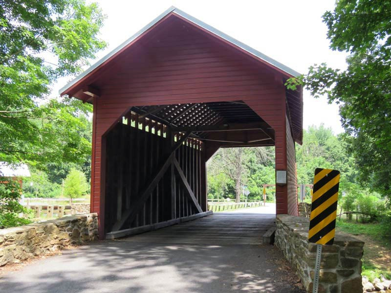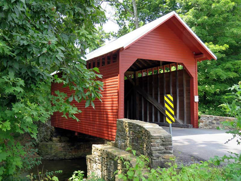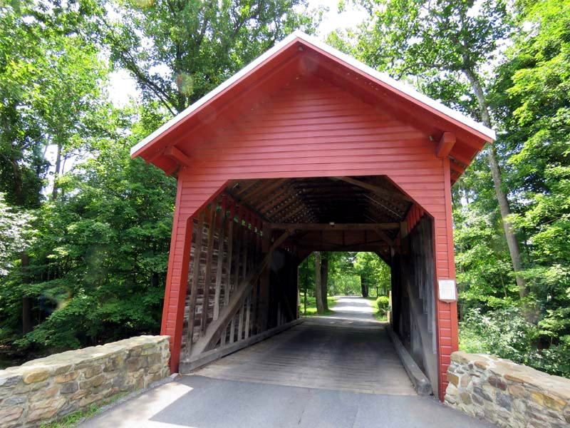 The 1856 Roddy Road Covered Bridge is a small, one-lane King Post wooden covered bridge crossing Owens Creek near Thurmont, Frederick County, Maryland. It is 40 feet long, 16 feet wide, and with a 12-foot-8-inch clearance. The smallest of the county's covered bridges, Roddy Road is a single-span Kingpost design bridge. The bridge was rehabilitated in 1995.