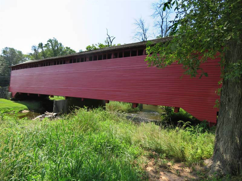 The oldest of the three covered bridges in Frederick County dates back to 1843, at which time it initially spanned the Monocacy River. In its first life as a 250-foot two-span bridge, it was known as the Devilbiss Road Covered Bridge.