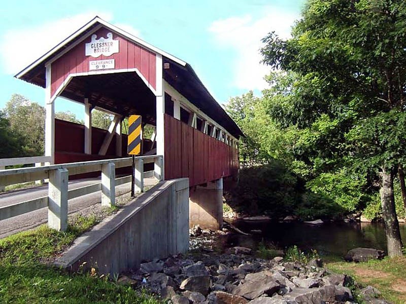 The Glessner Covered Bridge is a historic covered bridge in Stonycreek Township, Somerset County, Pennsylvania. It was built in 1881 and is a 90-foot-long, long-multiple Kingpost truss bridge, with half-height plank siding and a tin-covered gable roof. The bridge crosses the Stony Creek River. It is one of 10 covered bridges in Somerset County and replaced a covered bridge built in 1881 in 1998. Also called PA-56-08 #2.