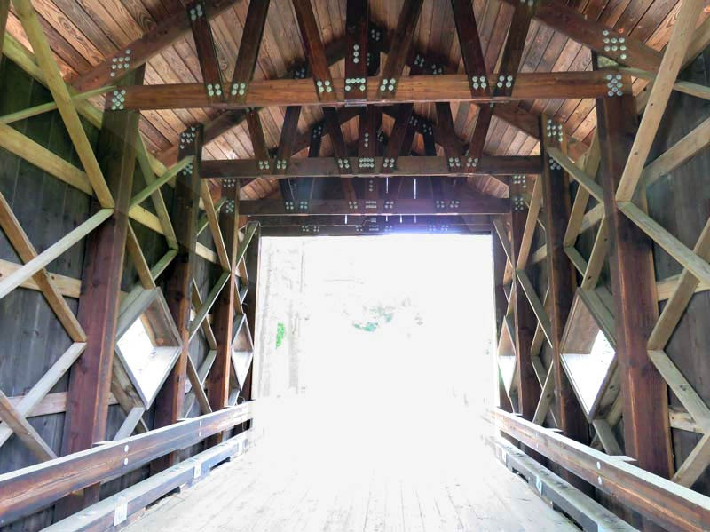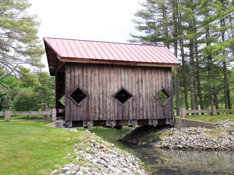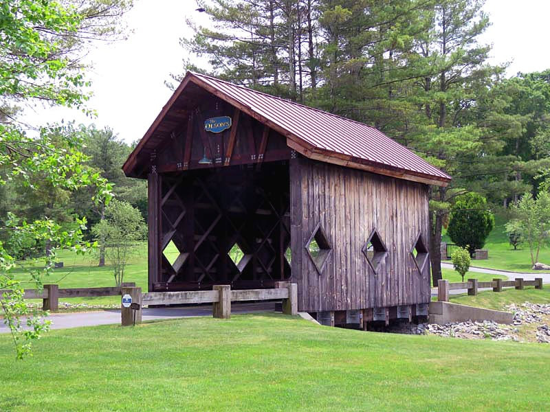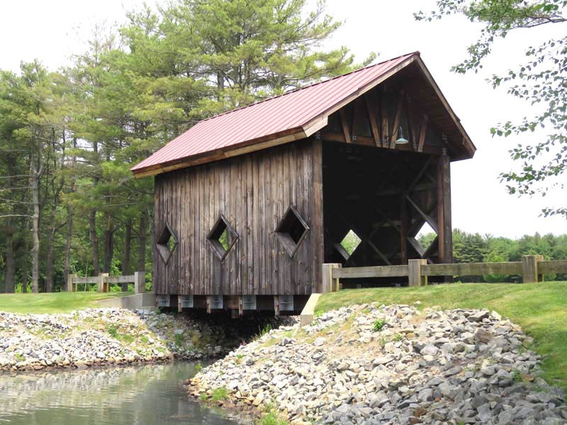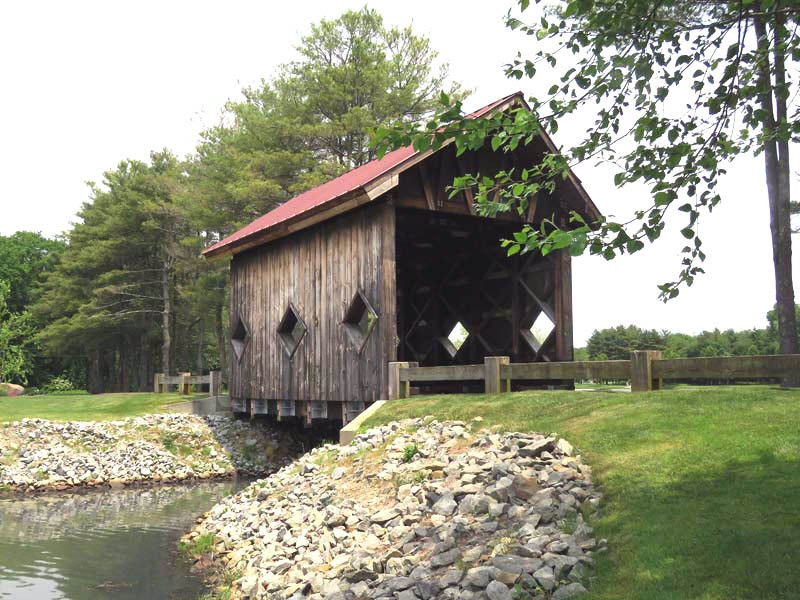 The 1993 Olson's Covered Bridge in Deep River, Middlesex County, Connecticut. A 15-foot stringer bridge over a private pond.