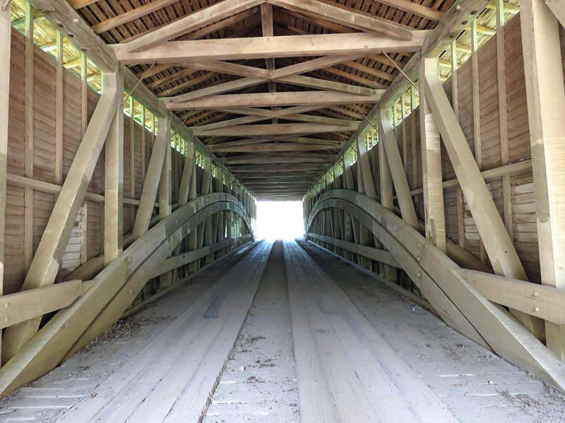 Unfortunately, the bridge was allowed to deteriorate and fall into disrepair. Because sections of the roof and siding were later missing, the rain was allowed in, and the northeast corner had even been damaged by fire. The bridge was eventually closed in 1982 and bypassed by a ford. By the 1990s, the bridge had fallen into severe neglect and was in grave danger of collapse. However, funds from a grant and help from local organizations, and donations allowed it to be restored to its original state in 1996. The bridge has even been reopened to traffic.