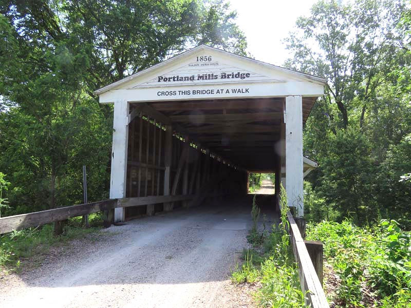The Portland Mills Covered Bridge is the second-oldest covered bridge in Parke County, Indiana, being built in 1856, the same year as the Crooks Covered Bridge. It is a single-span Burr Arch Truss-covered bridge that was built by Henry Wolf.
